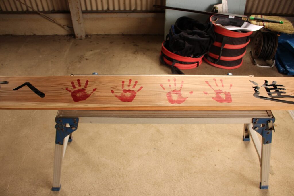手形も指先の一本一本まで鮮明に浮かび上がるほど力のこもったような手形を板へ