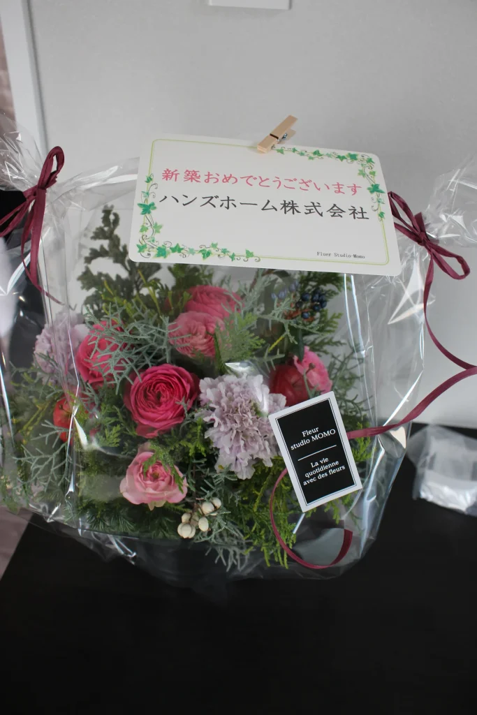 テープカット後はお祝いのお花をお渡しさせていただきました。