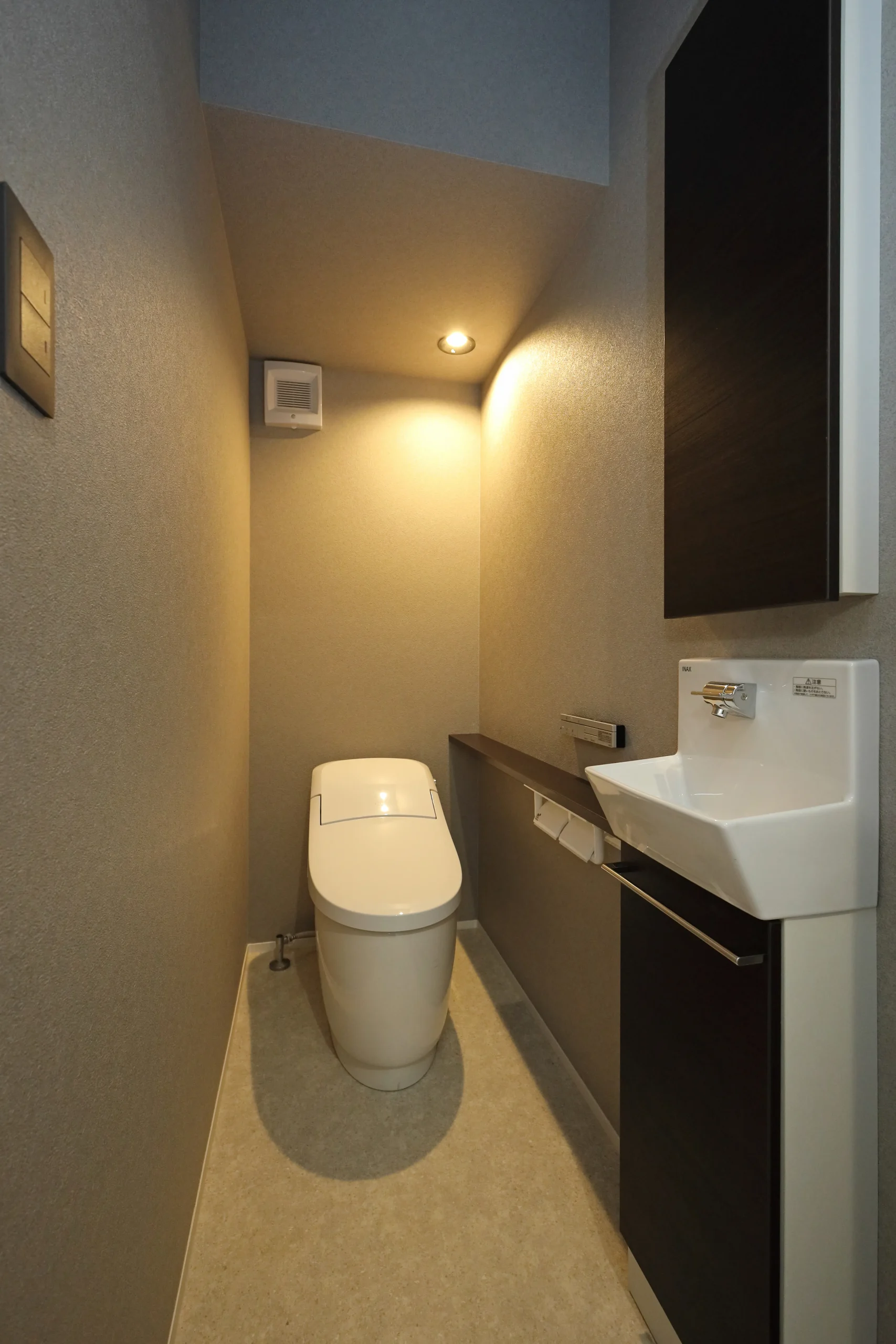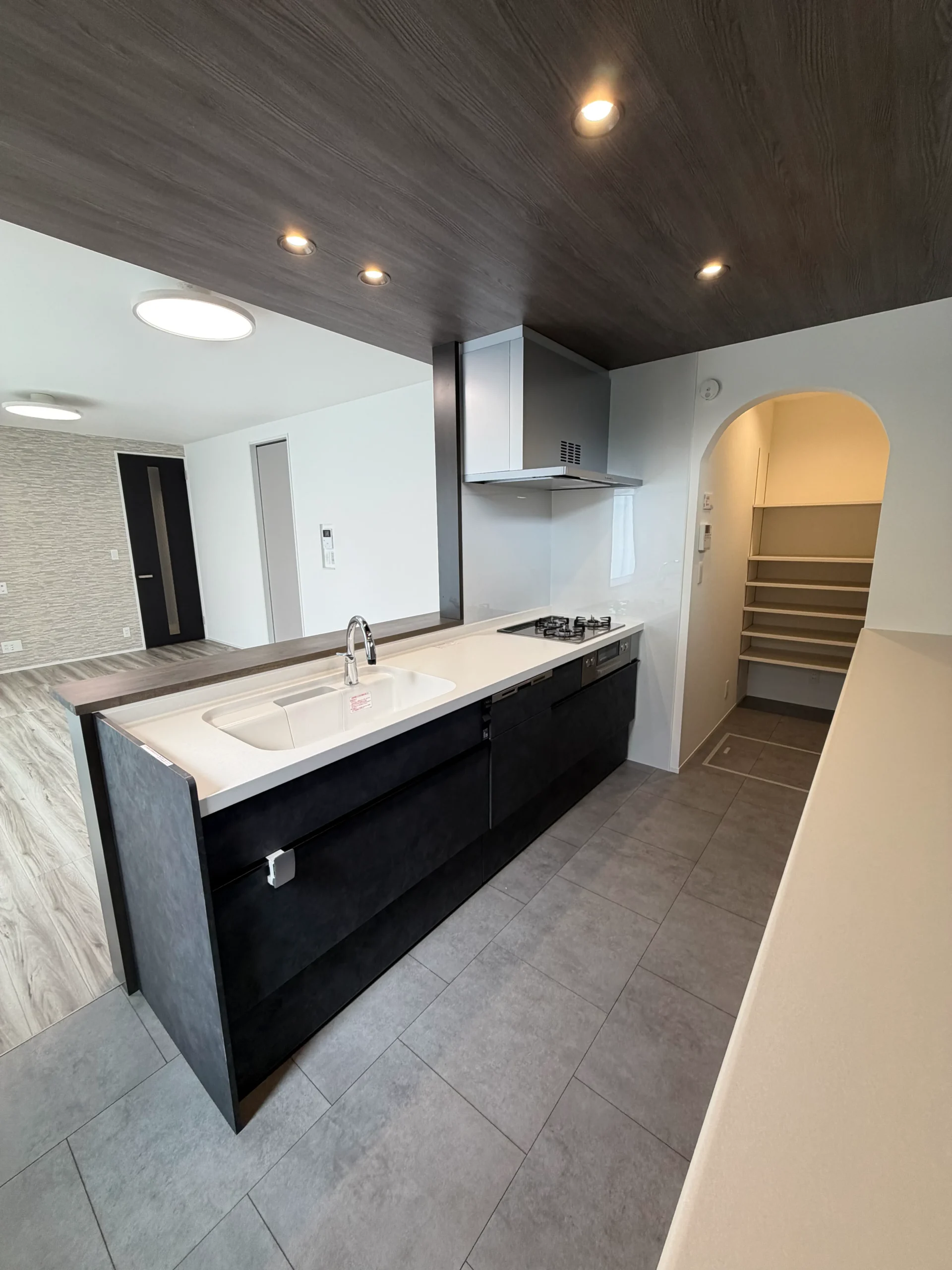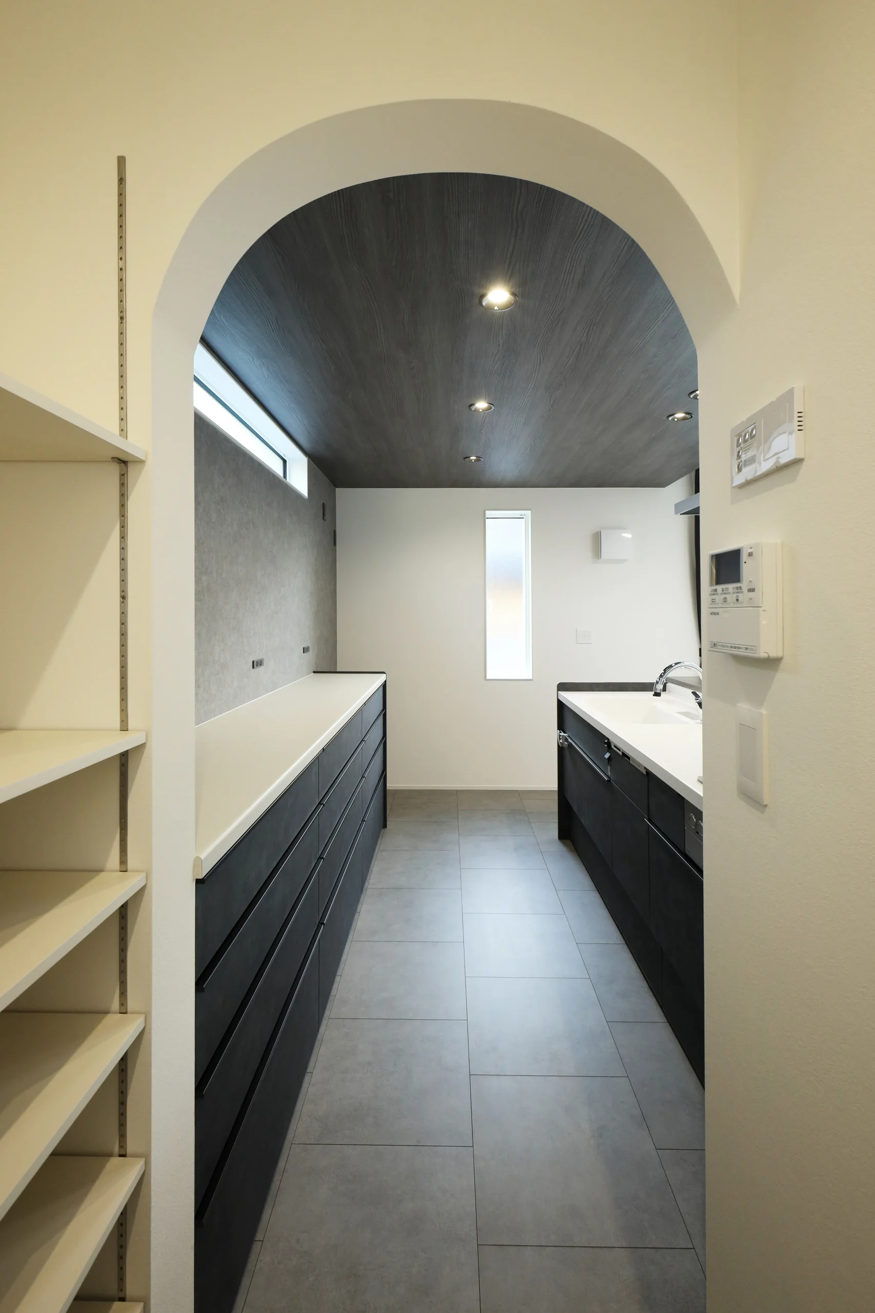 外観も内観もグレー色を基調にしたホテルライクデザインのシックな家。