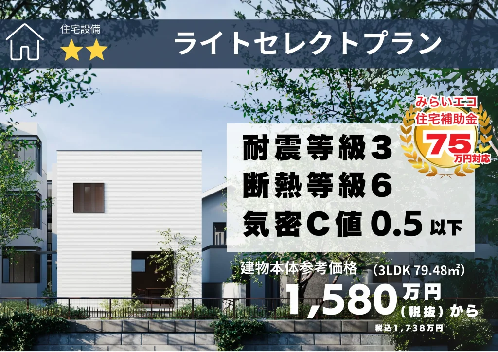 ライトセレクトプランは、必要な性能の基準がわかりやすいため、家づくりを考え始めた方にも比較しやすいプランです。