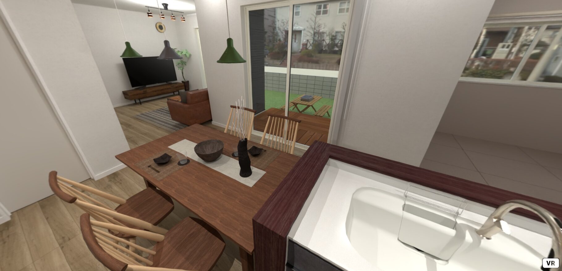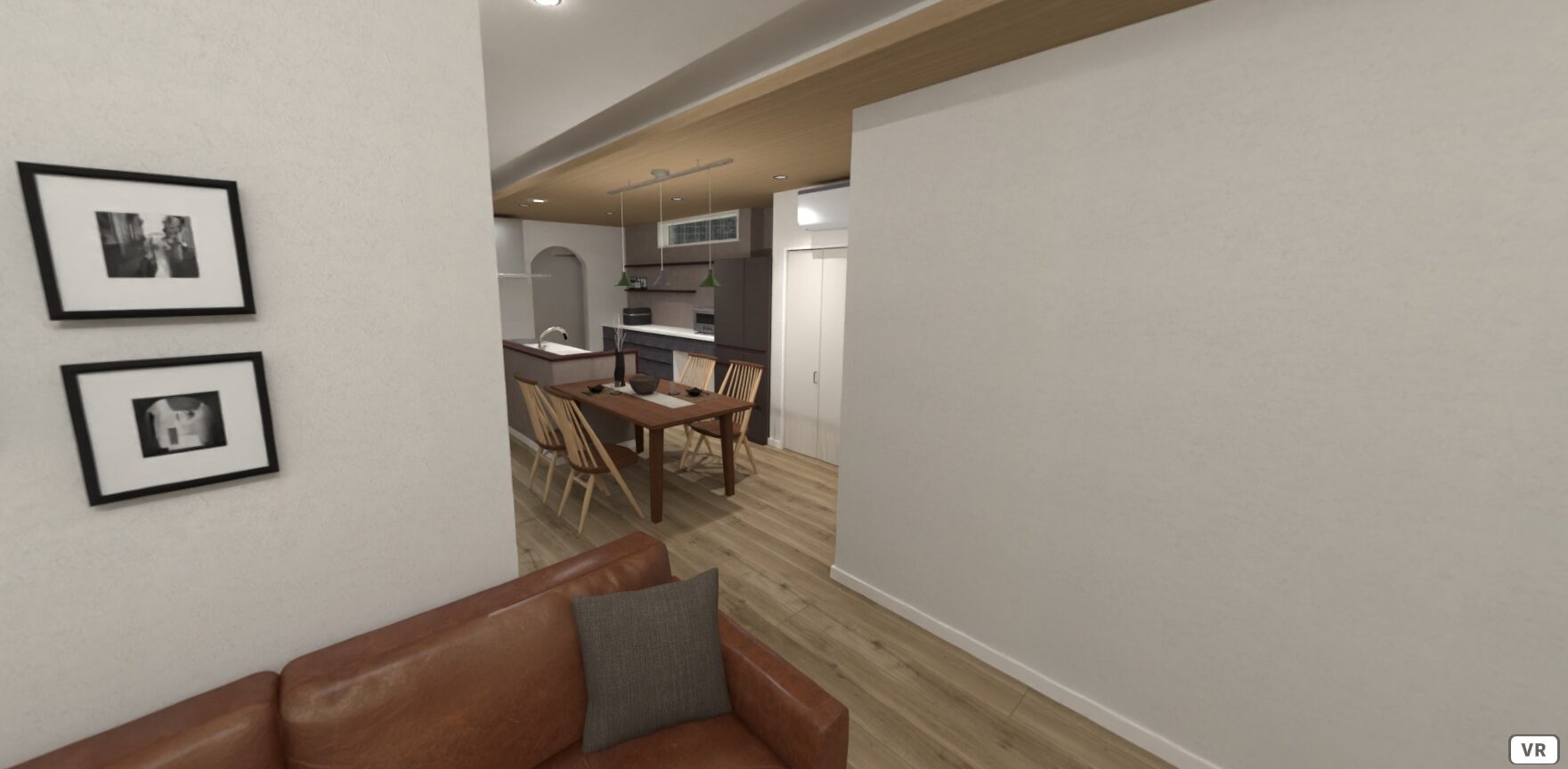 パンズホームではVRを使って完成前の家を確認することができます。VRの簡易版「パノラマ内観」と現地の出来上がった住宅を見比べてみてください。家づくりで失敗しないためにはVRが必要だということがきっと分かると思います(画像をクリックするとパノラマ内観が見れます)