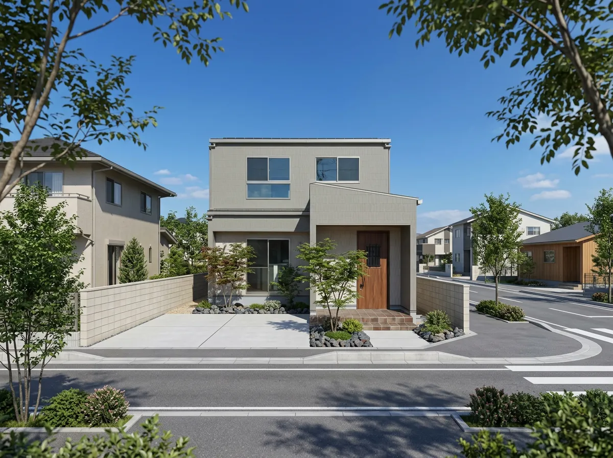 和の落ち着きとモダンなデザインが融合した、心地よい住まい。玄関は広々とした設計で、家族や来客を温かく迎え入れるゆとりある空間となっています。玄関から裏庭へと続く動線は、外とのつながりを感じさせ、住まい全体に開放感をもたらします。